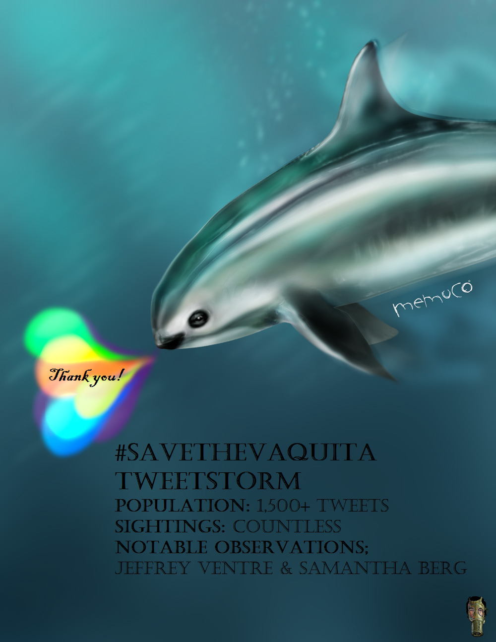 I check Facebook and Twitter every day, and I am increasingly amazed by the impact the Vaquita is causing. Literally millions of people are learning about and being touched by the Vaquita’s story every day, especially recently. It’s almost like every day is a Vaquita Tweetstorm.